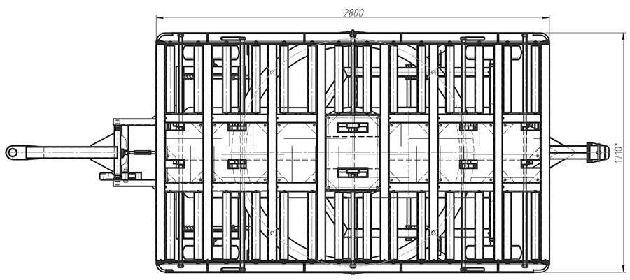 The trolley is build up on two frames: lower and upper. Lower frame is fixed on four wheel bearings, the upper frame, with the rollers, is swivel and fixed to the bottom by a turntable of f650mm, with supporting polyamide rollers.